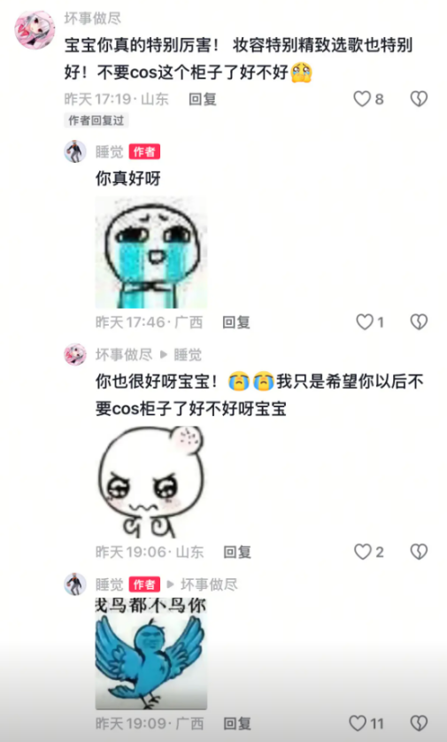 这个梗的爆火起源于一位博主的评论区,有网友对其发布的敏感COS内容善意提醒,博主先“真诚”回应,却在网友再次相劝后,发出这张态度“迅速转变”的表情包。见惯了大大小小的网络骂战,突然发现竟有一个表情包起到了“戛然而止”的作用,并附带着“我并不想理你”的交流暂停之意。这略显荒诞的反差场面,让众多“看乐子”的网友眼前一亮。于是,从玩梗狂欢的评论区到朋友间调侃逗趣的私聊框,小蓝鸟迅速“繁殖”开来。