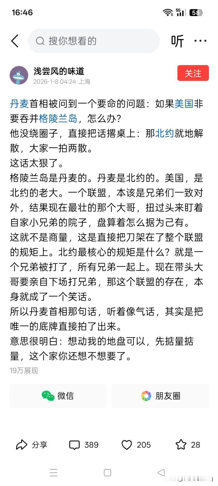 既然保不住,卖了又何妨? 格陵兰岛虽然很大,但长期以来,据说不仅仅是没有为丹麦贡献任何一点财政收入,似乎还要丹麦本土给予财政补贴才能正常运转,好像妥妥就是一个地地道道的累赘。 当然,这并不是说,有人施加点压力,就赶忙将国家的领土卖给他,这里说的是,在如果不收钱出售的情况下,尽管事实上采取各种保留的办法都无法保留,甚至是根本就没有保得住的办法,确实无可奈何的现实情况下。 如果美国坚定不移的一定要强占格陵兰岛,像丹麦首相梅特·费雷泽里克森说的那样:那就北约就地解散,大家一拍两散。但是,北约解散似乎与美国强占格陵兰岛并没有什么特别的作用,也好像美国不能因此而打消强占格陵兰岛的念头,甚至是还有可能让美国如同脱缰的野马,更加的横冲直撞。 即便是格陵兰岛的地下埋藏有着极为丰富的矿产,特别是稀土,但在恶劣的自然条件下,如果要进行开采,估计也是很久以后的事情。