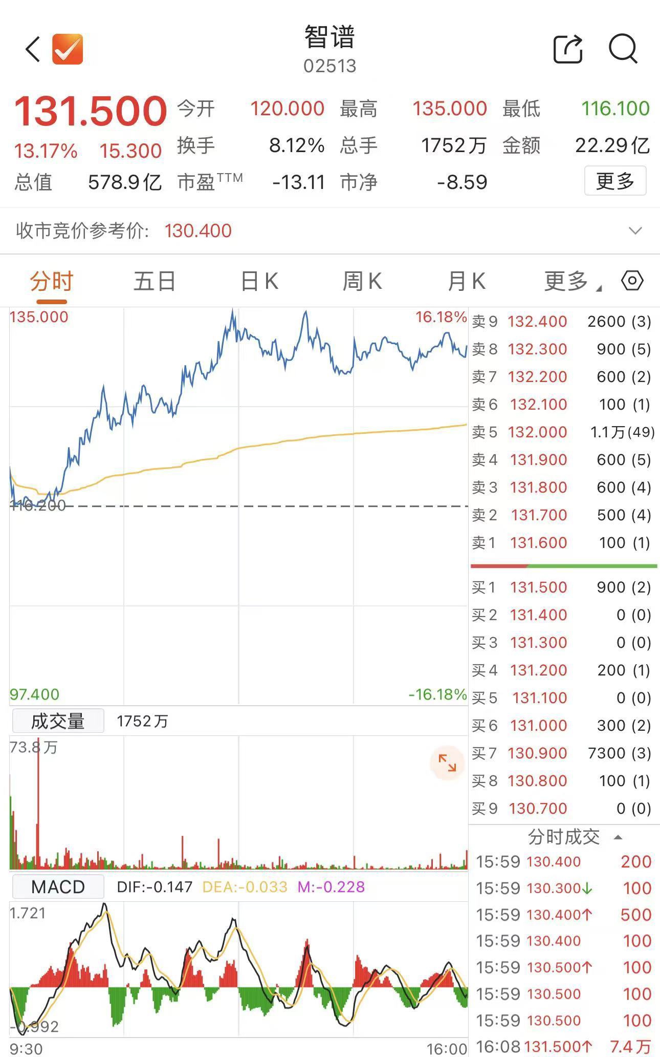 1月8日,“全球大模型第一股”智谱(02513.HK)在香港证券交易所上市。截至1月8日收盘,智谱股价为131.5港元/股,上涨13.17%,市值达578.9亿港元。