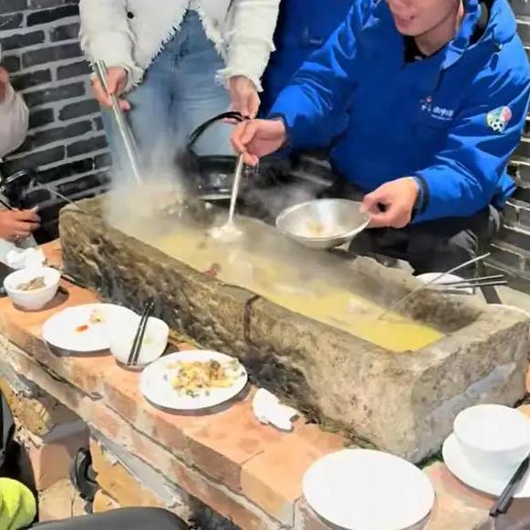 你能想象去餐饮店吃饭,端着碗围在猪食槽边大快朵颐吗?这可不是天方夜谭,今天我就在网上刷到了这样一段视频,直接惊掉我的下巴! 视频里,一人提着桶饭,拿着大勺往石头槽子里盛,里面有肉、红枣,汤还金黄,看着挺诱人。我正想着这猪吃得真不错,下一秒,一群人端着碗围过来,从槽子里盛饭吃得那叫一个香。要知道,这种石槽子以前在农村可是专门喂猪的,俗称“猪食槽”。 更离谱的是,网上还有把包间设置成农村旱厕模样的餐饮店,光看一眼就让人浮想联翩,更别说在里面吃饭了。现在的人猎奇心咋这么重呢?这些餐饮店到底是想创新,还是单纯为了博眼球?那些在猪食槽边吃饭的人,是真不知道这槽子的用途,还是单纯为了满足好奇心? 你见过这种用猪食槽吃饭的场景吗?要是你,会去这样的地方吃饭吗?快来评论区聊聊你的看法!