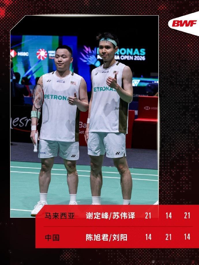 直播吧1月8日讯马来西亚羽毛球公开赛次轮陈旭君/刘阳1-2不敌谢定峰/苏伟译,无缘男双八强。