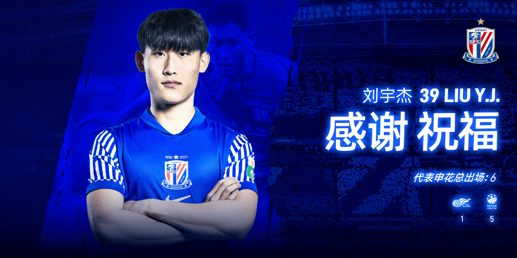 感谢刘宇杰在效力申花期间的努力和付出,祝愿他未来的职业道路一切顺利!