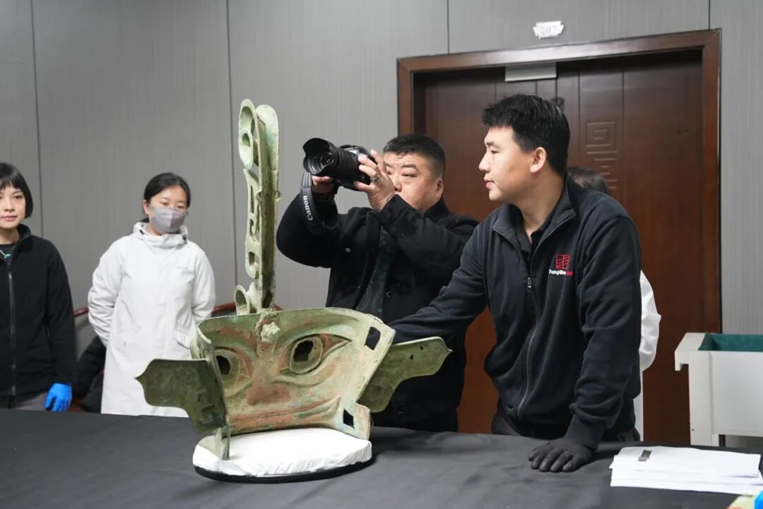 本次展览中,三星堆博物馆文物共37件(套),包括备受瞩目的商青铜兽面具、青铜龙柱形器和青铜着裙立人像,以及1号青铜神树、大立人像和鸟足神像的复制品(3D打印件)。展览将在中国国家博物馆南8、南9展厅进行,持续展出至8月18日。