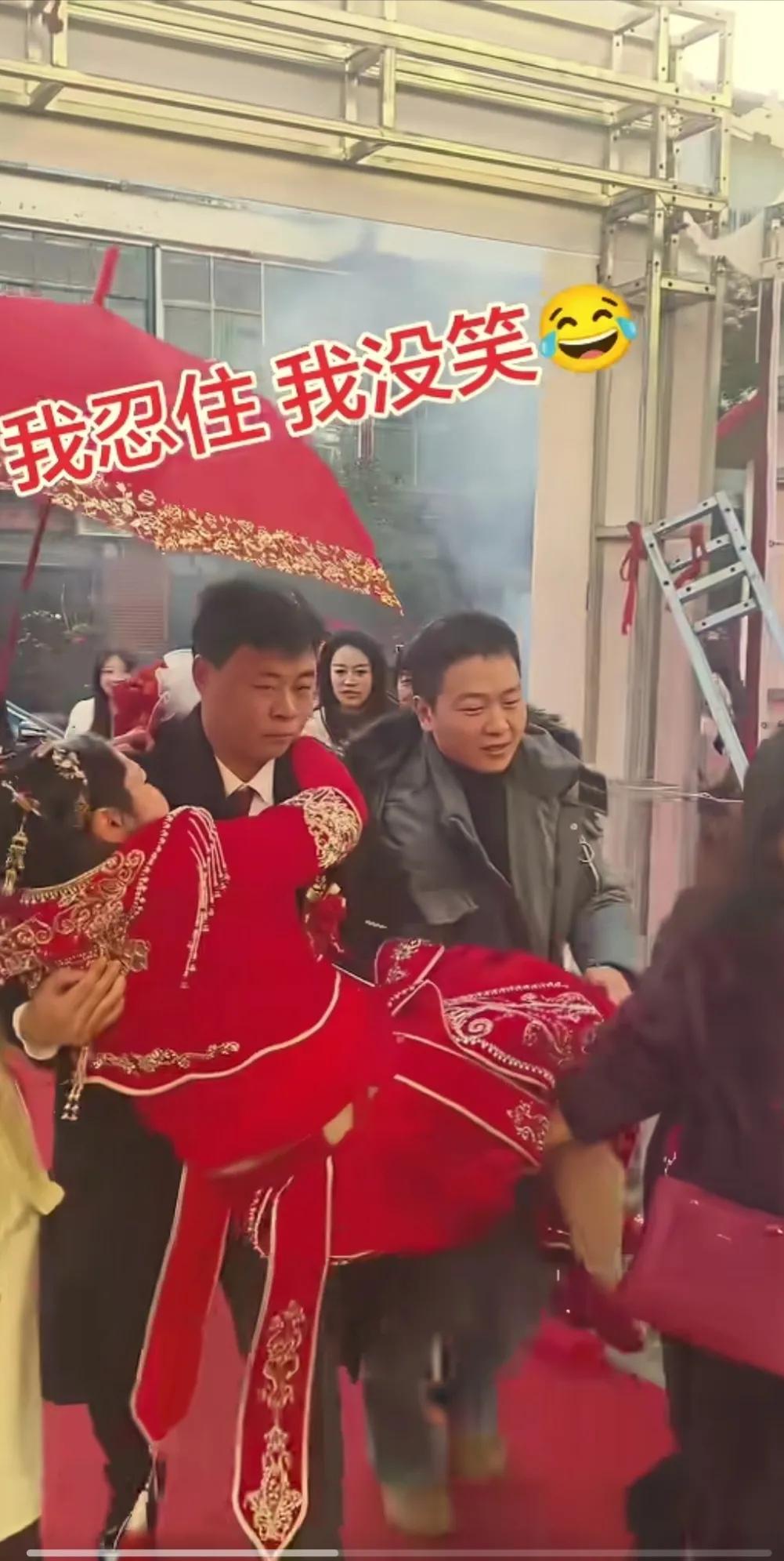 新郎长得这么大的个子,新娘又不胖,还抱不动,需要别人帮忙,才勉强抱着能迈开脚步。