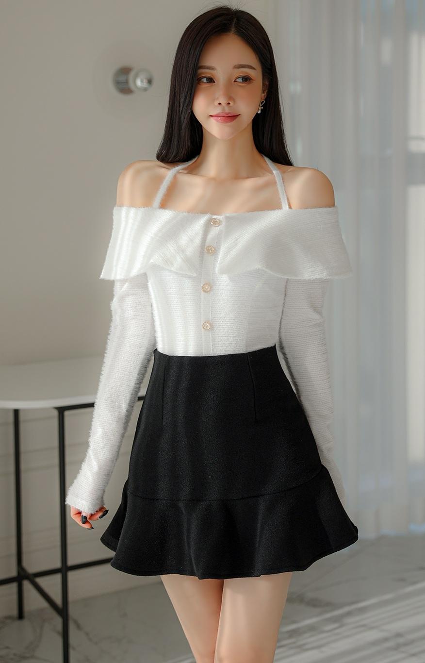 白色露肩上衣搭配黑色短裙,这组合简直是优雅气质穿搭的典范。 就说白露肩衬衫配“刀锋”包臀黑短裙,2023秋冬秀场就很爱这黑白撞色。露肩设计把肩缝往前挪1.5厘米,巧妙藏住副乳。短裙后片比前片短2厘米,走路时裙摆灵动,坐下时裙摆上滑,黑白对比超强烈。再配上3D打印的蝴蝶结,时尚感拉满,25 - 35岁女性超爱。 还有米白露肩扭结针织衫搭黑A字裙,露肩设计展现锁骨美,毛绒袖口很优雅。高腰A字裙修饰身材,配白色尖头短靴,简约又时尚,尽显不费力的优雅。