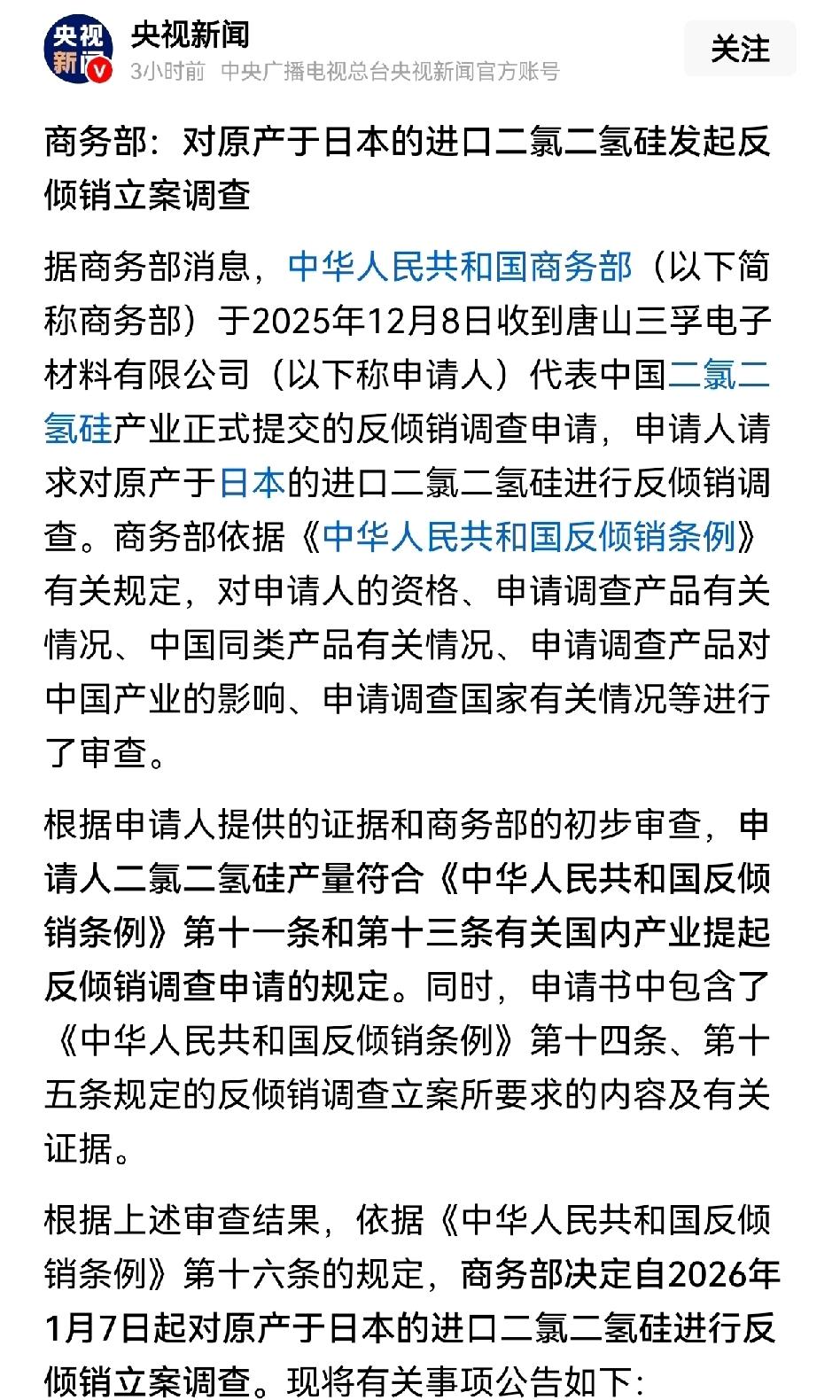 我们不过出了一招组合拳,“军民两用物项出口管制+二氯二氢硅反倾销调查”,小日子就叫苦不迭,开始拿国际法说事了。 真是恶人先告状。 其实,我们的工具箱还远未见底,比如: 光刻胶及芯片相关制成品反倾销调查 汽车及零配件反倾销调查 石油天然气及铁矿石海上禁运 环冲绳群岛能源军火毒品走私行政执法 动漫与数字产品准入审查 机床与精密机械反垄断调查 医疗与健康产品安全审查 旅游长期高风险警示 等等… 我们不是没有狠招,只是没到非出不可的时候而已。 再真诚奉劝小日子一句:现在反省思过改错,还来得及。 否则,莫怪东大下狠手。