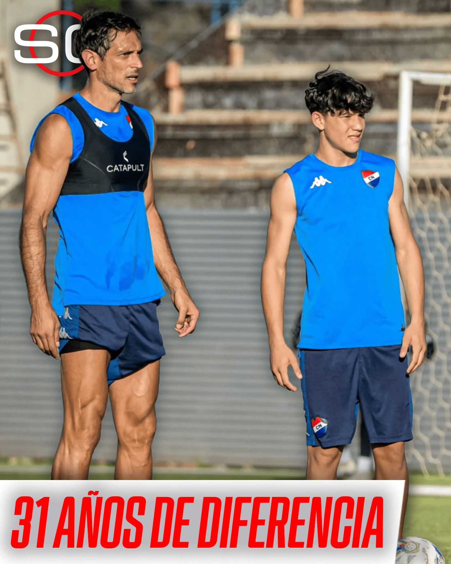 于是这对年龄差高达31岁的组合也以队友的身份出现在在了巴拉圭国民队的训练场上。