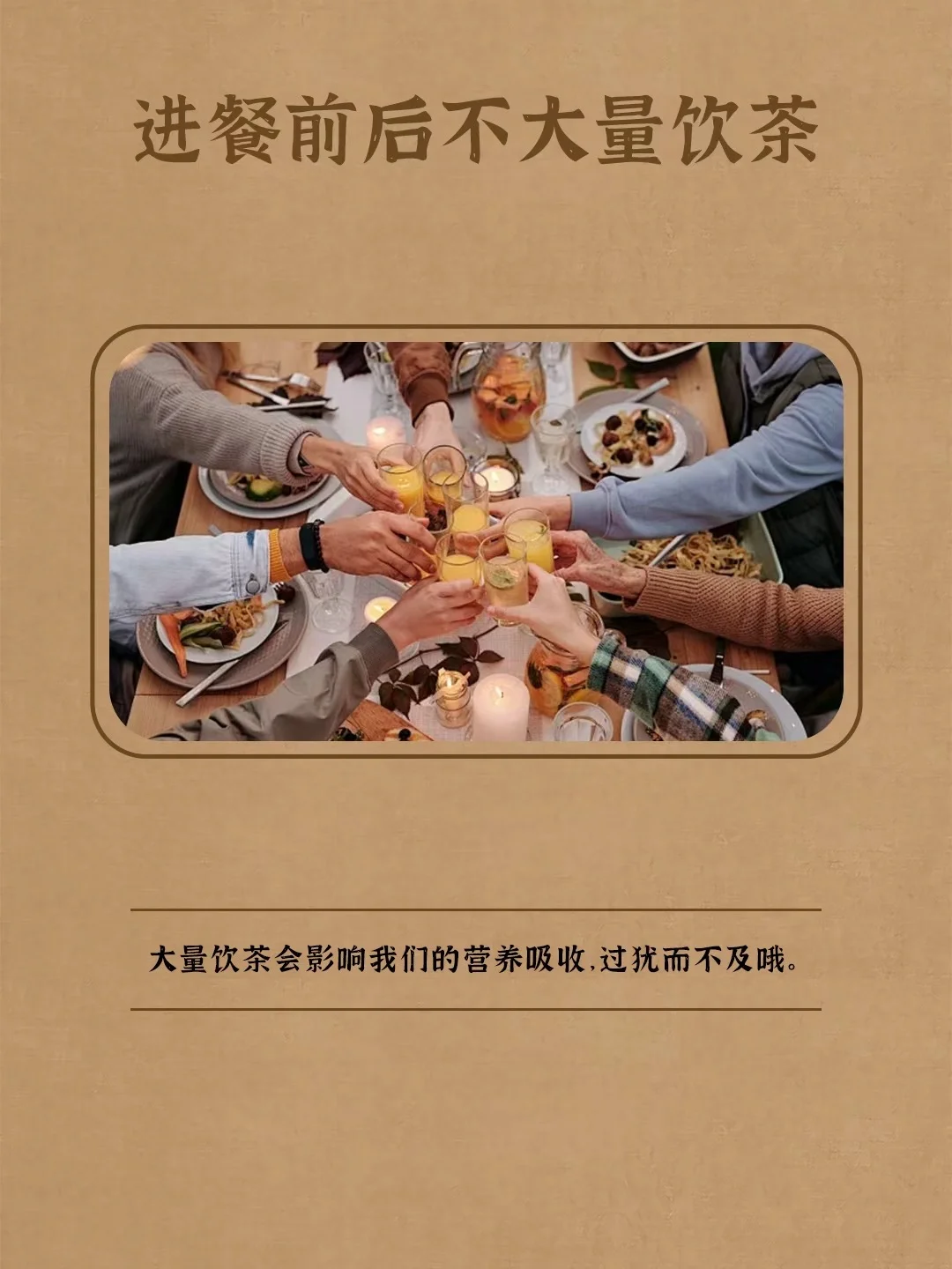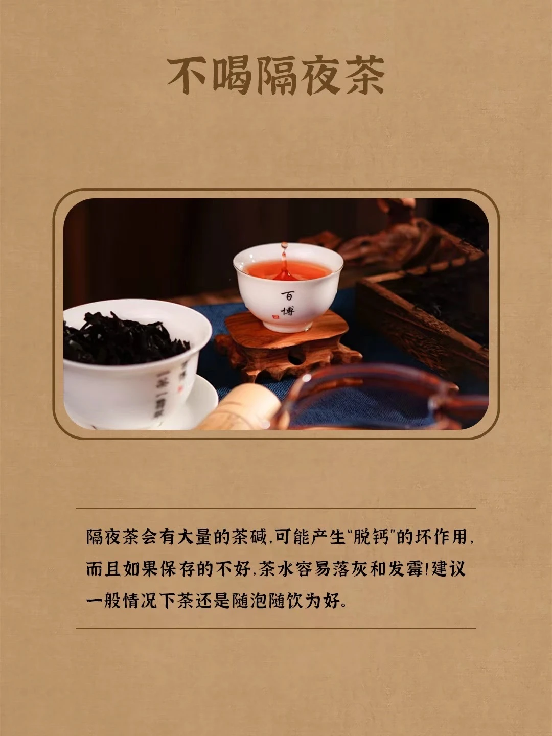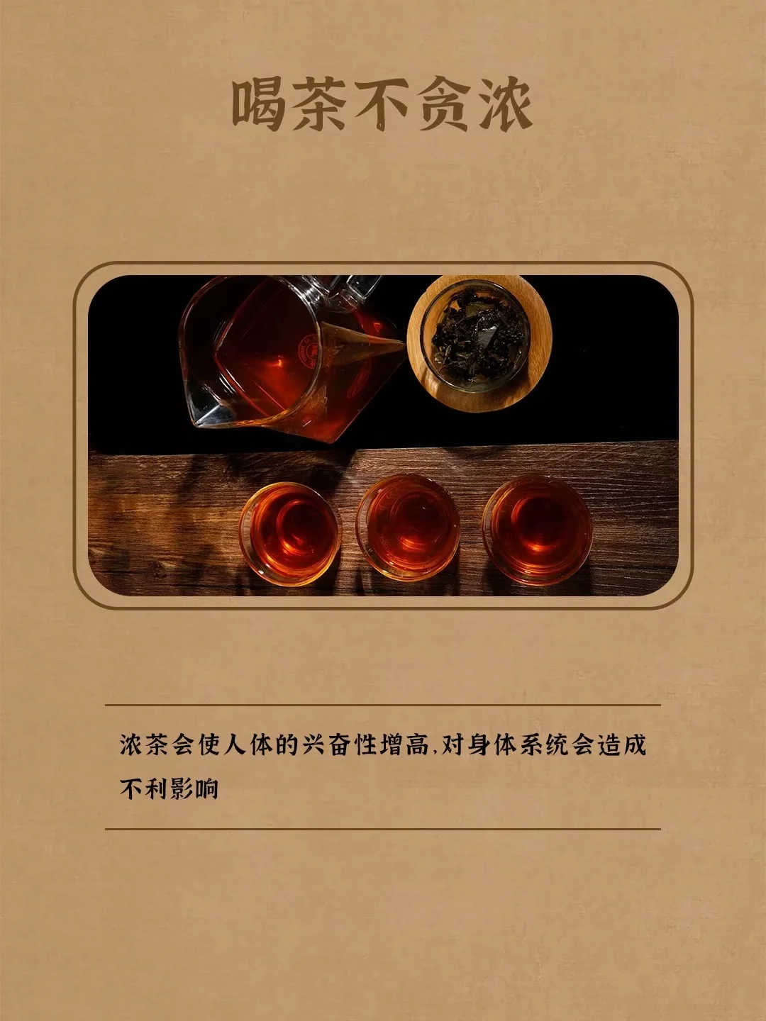 1、喝茶不贪新 2、喝茶不贪浓 3、不喝头遍茶 4、不喝隔夜茶 5、进餐前后不大量饮茶