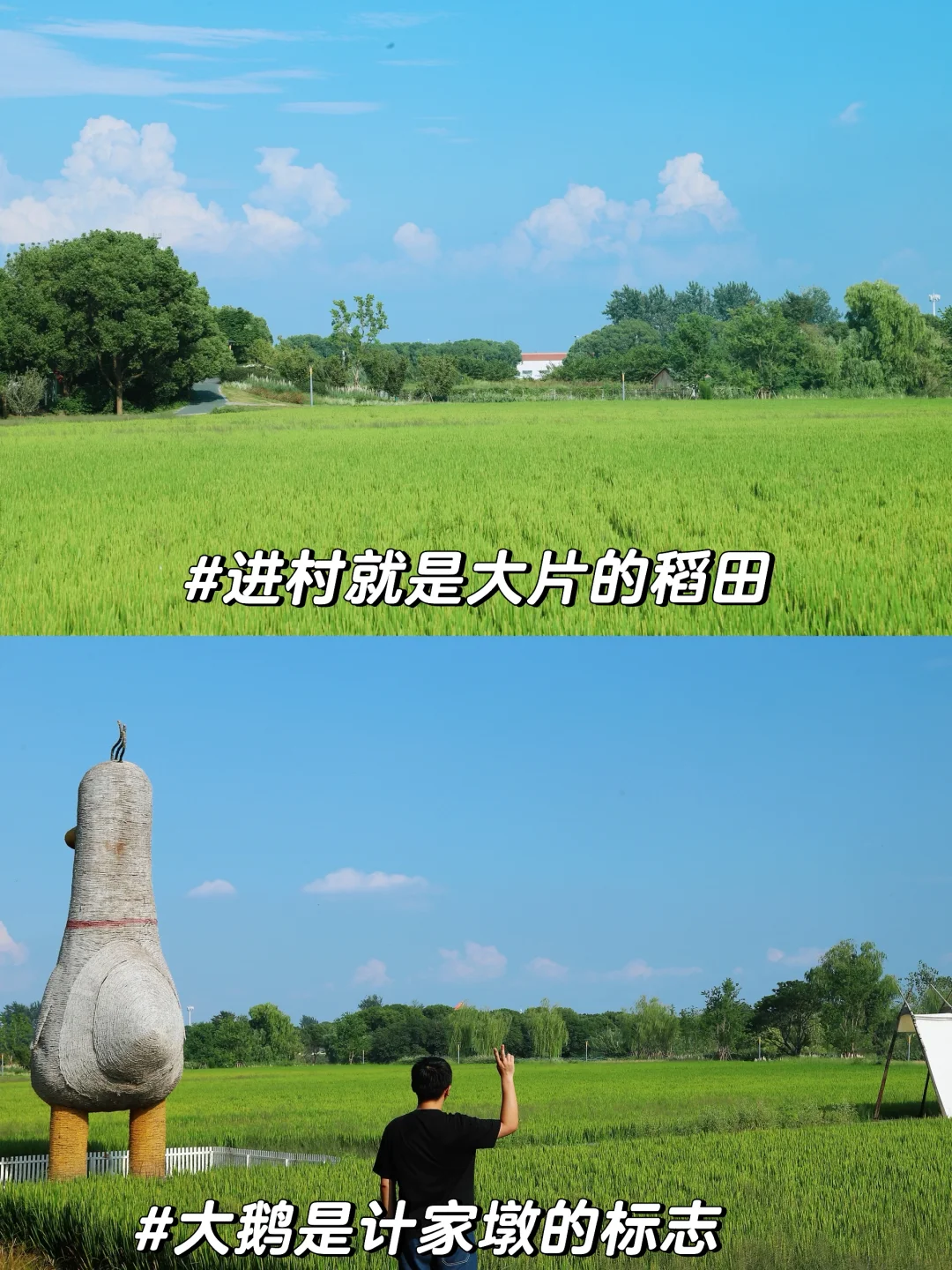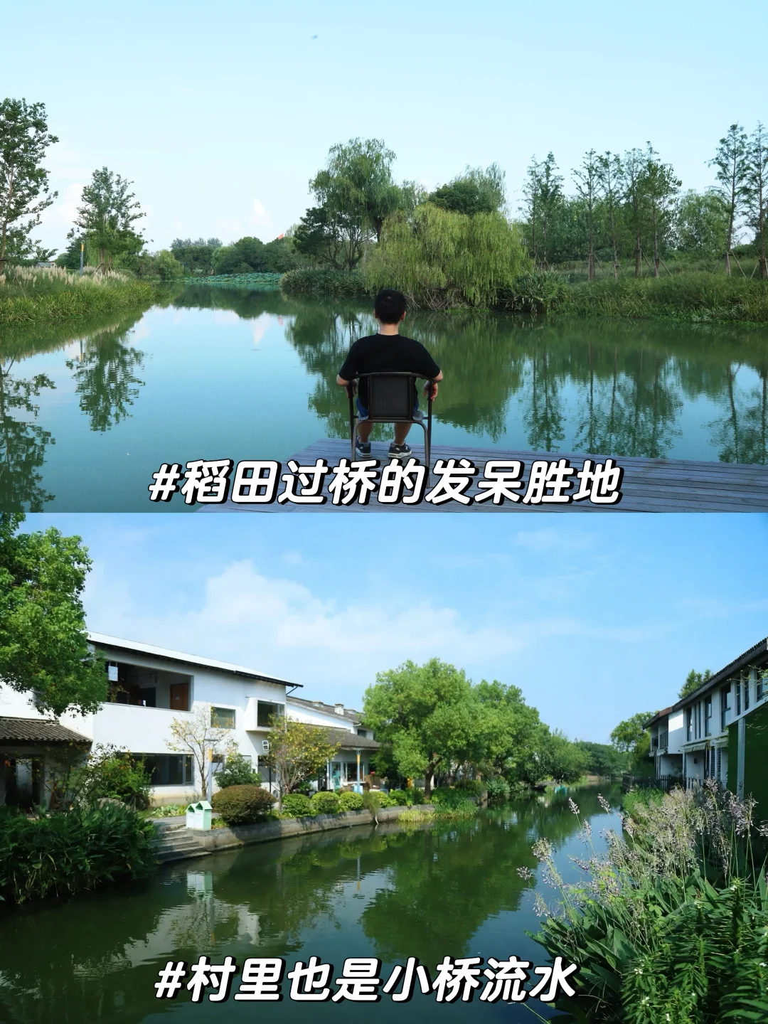 进村就是大片的稻田🌾🌾🌾田里一只大鹅雕塑🪿是理想村的标志。深入稻田走过木桥,一条小溪很适合发呆,也很适合看日落🌇