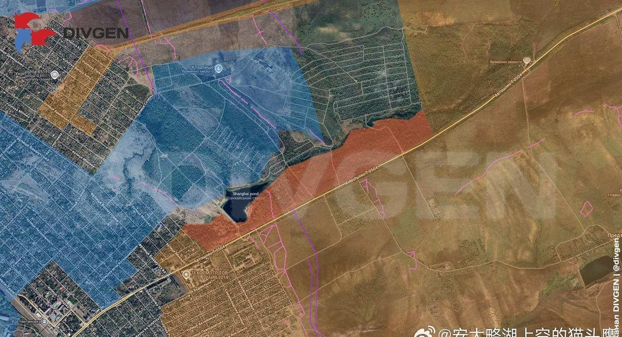 康斯坦丁诺夫卡镇的东南郊区。突击小组已从侧翼进入“化学家”园艺合作社区域。 俄乌