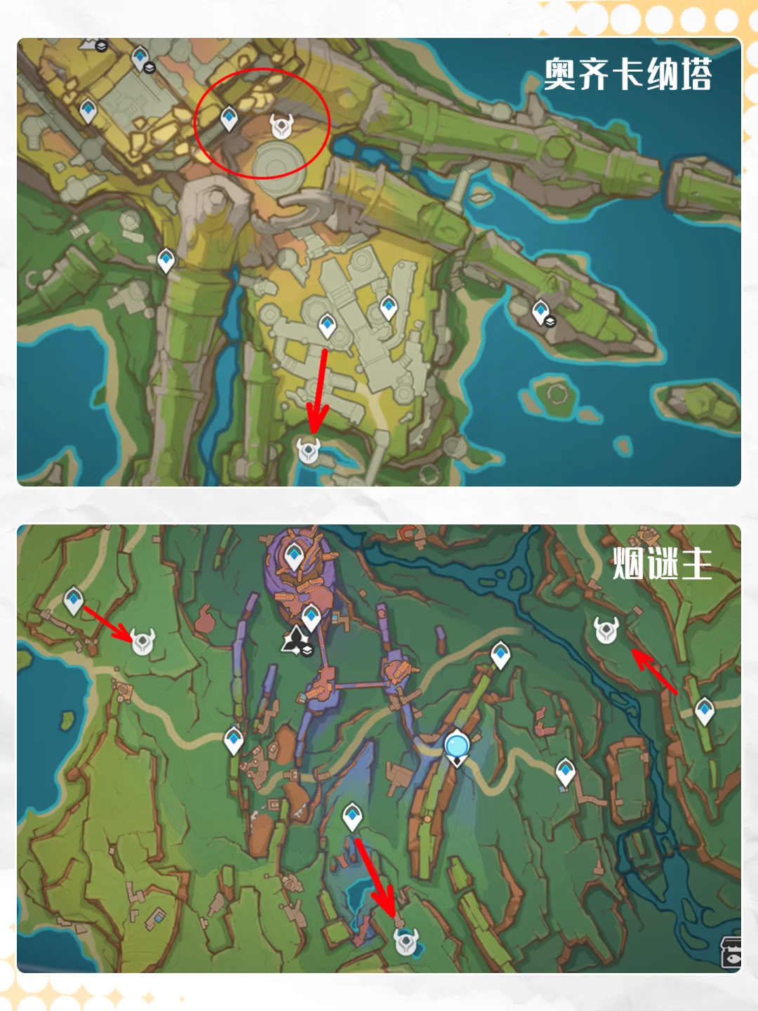 新增纳塔5.2版本新区域奥齐卡纳塔+烟谜主:大灵显化身标点 ⭐掉落物「意志破碎的残片」是武器:冲浪时光、乘浪的回旋、弥坚骨、木棉之环的突破素材
