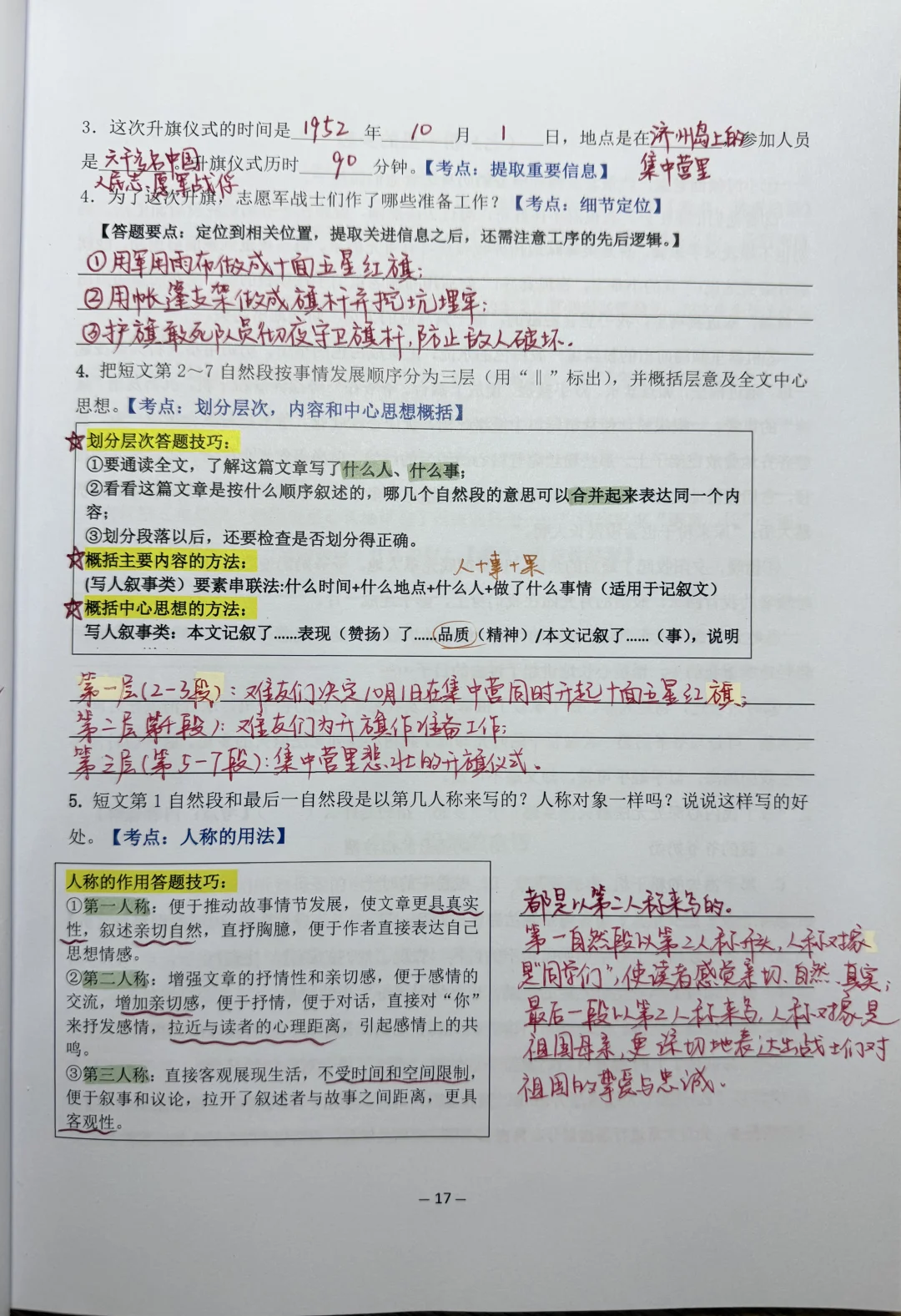 第一步 先帮学生定考点,审清题型; 第二步 厘清答题思路及答题要点; 第三步 根据答题模板分点作答。 🌟今日训练题型: ①理解词语的含义; ②划分层次; ③概括中心思想; ④人称的用法 这套分类阅读真题是结合了35个常考题型的答题模板,让孩子边做题边厘清思路,帮助孩子理解性地记忆知识点,量的积累才能促进质的飞跃!