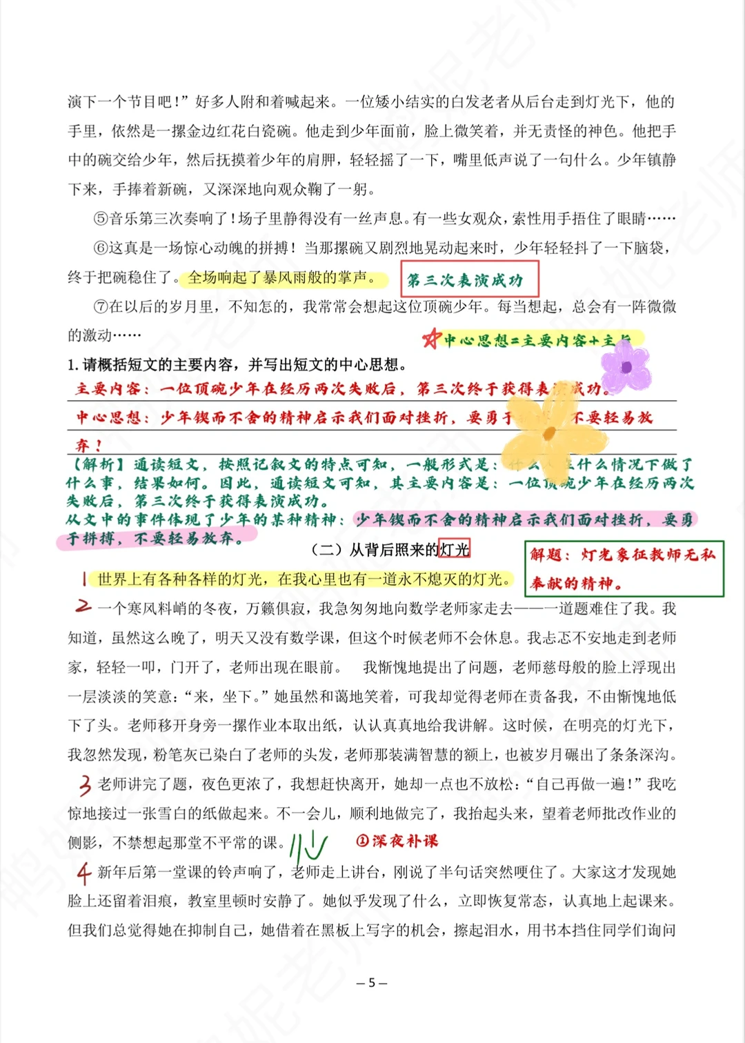 🔹答题模板:本文通过......(故事)。告诉(说明)......道理。