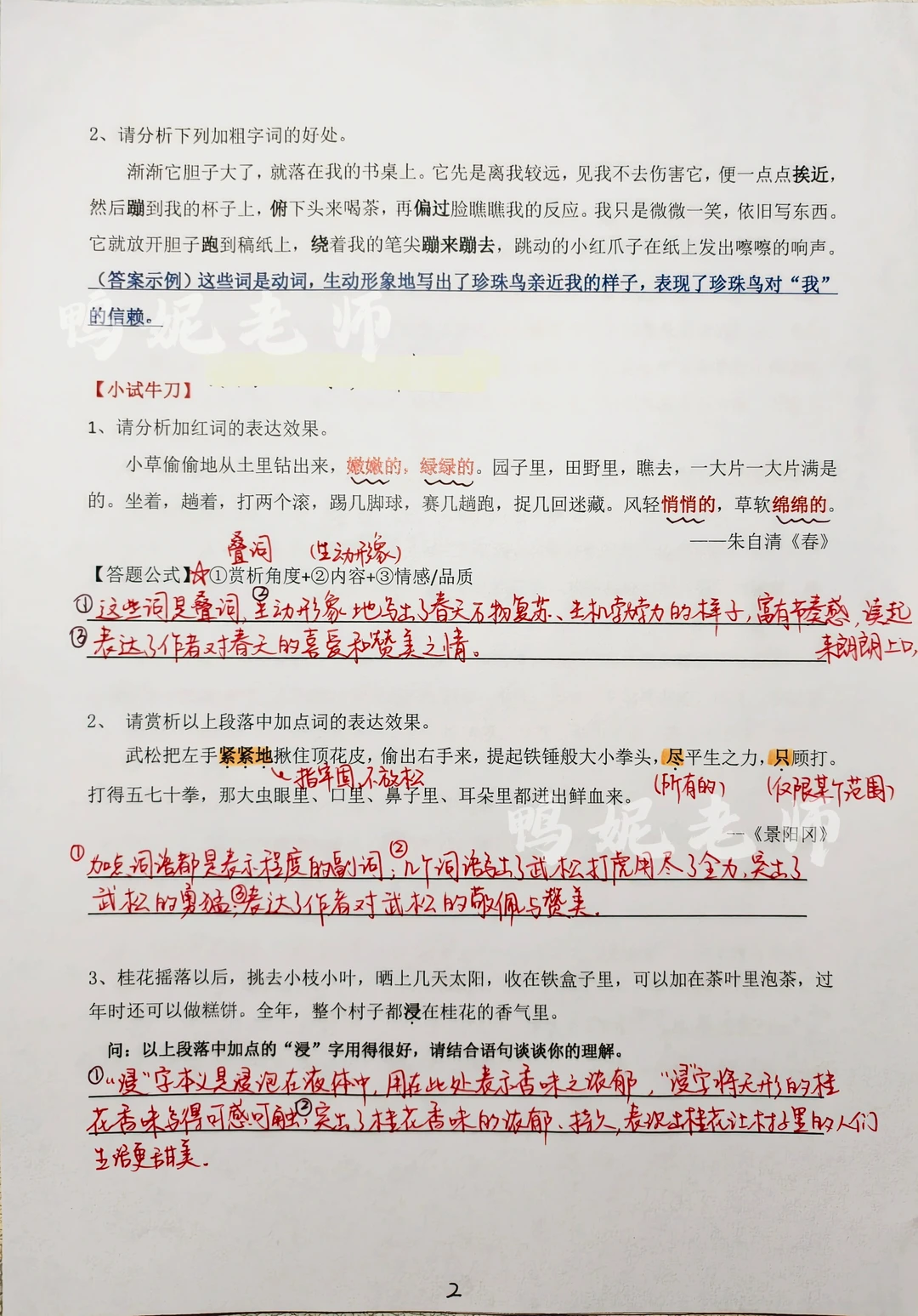 今天暑期阅读训练第二天打卡啦~ 专题2️⃣—赏析词语的表达效果 知识点讲解➕例题解析➕答题思路➕答题公式➕训练题 跟着鸭妮老师一起打卡,阅读理解不再是难题!