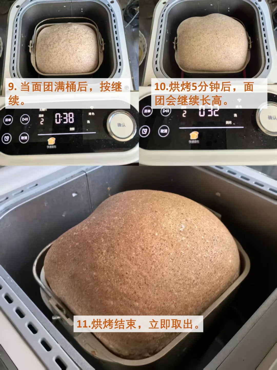 如果面包机没有这两个程序也没关系,图9和图10给出了市面上用的较多的面包机的通用操作步骤,供参考。