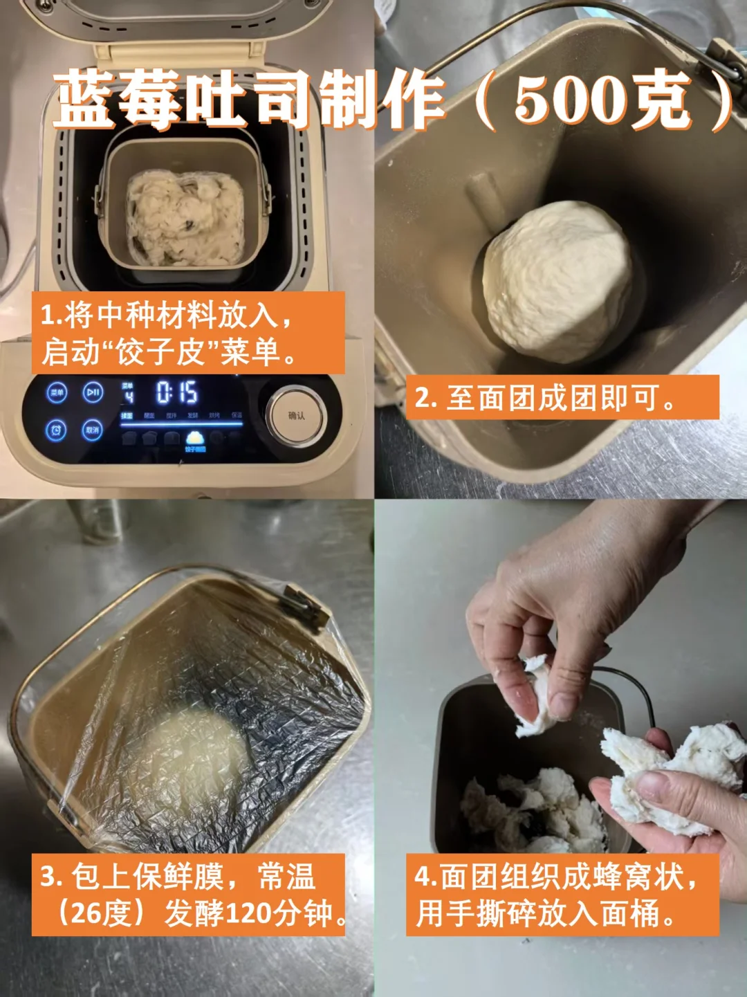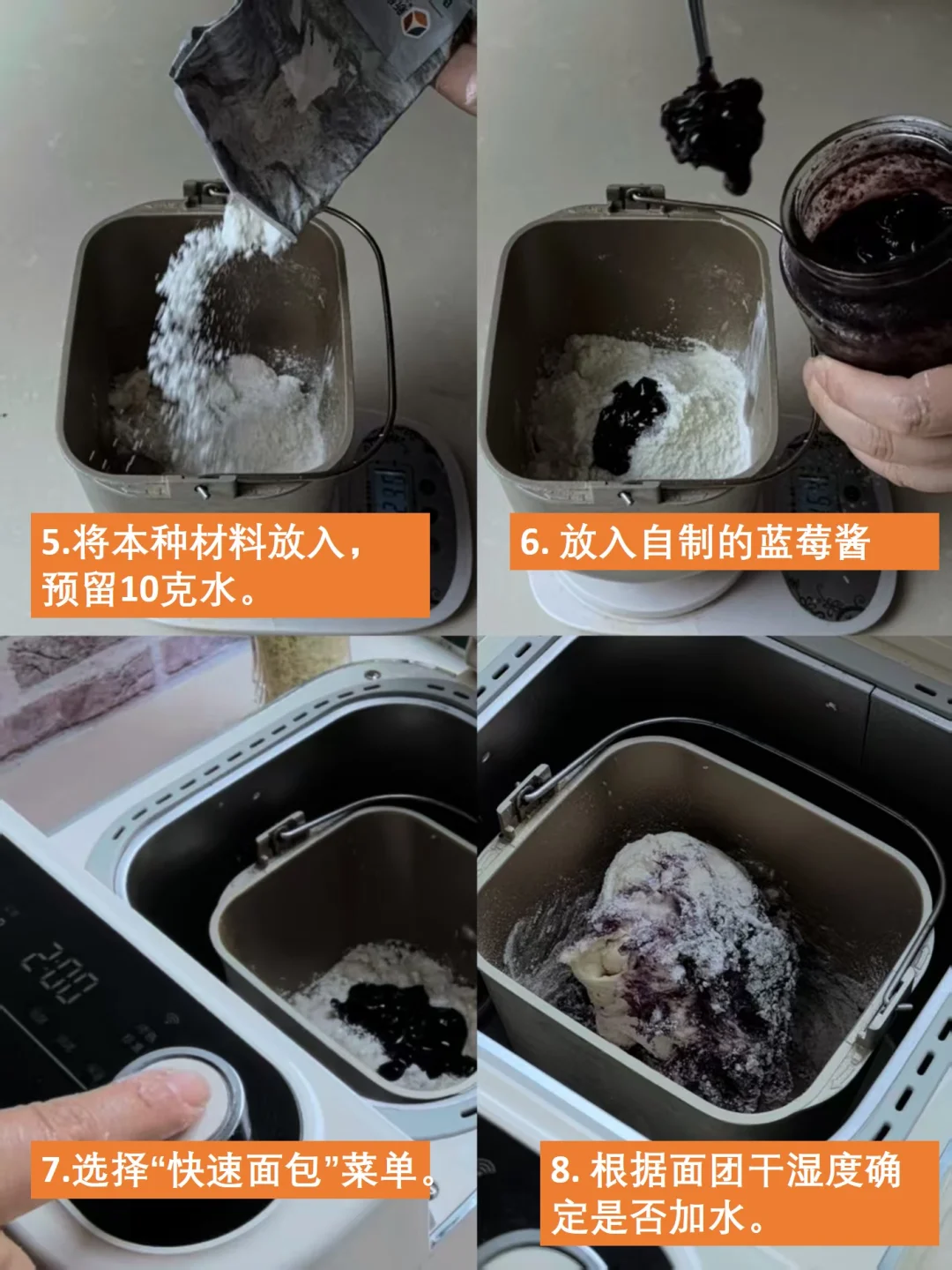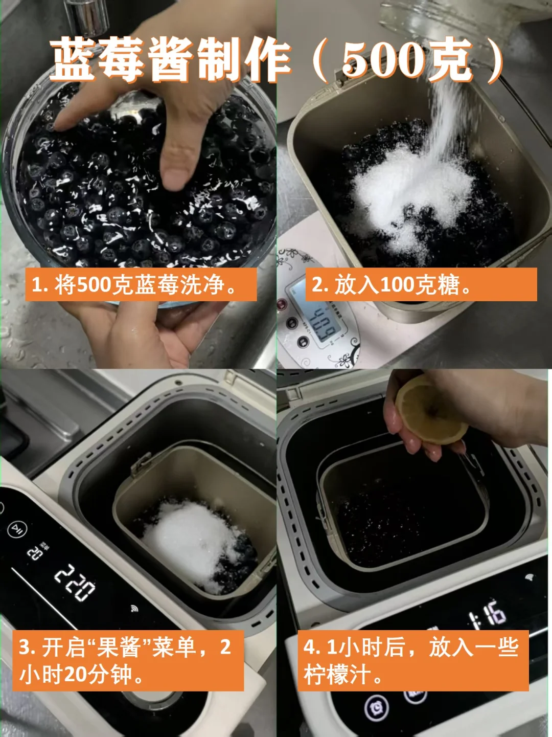 [烟花R]重点是,蓝莓酱也是用面包机做的,只要将蓝莓和糖放入,一键搞定,全程零难度,新手也能轻松搞定。