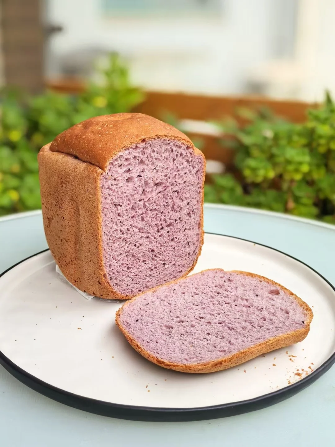 [烟花R]这个蓝莓吐司来自吴克己大师的野生蓝莓吐司,我依旧偷懒用面包机做,而且省去了野生蓝莓和核桃,操作更加简单。