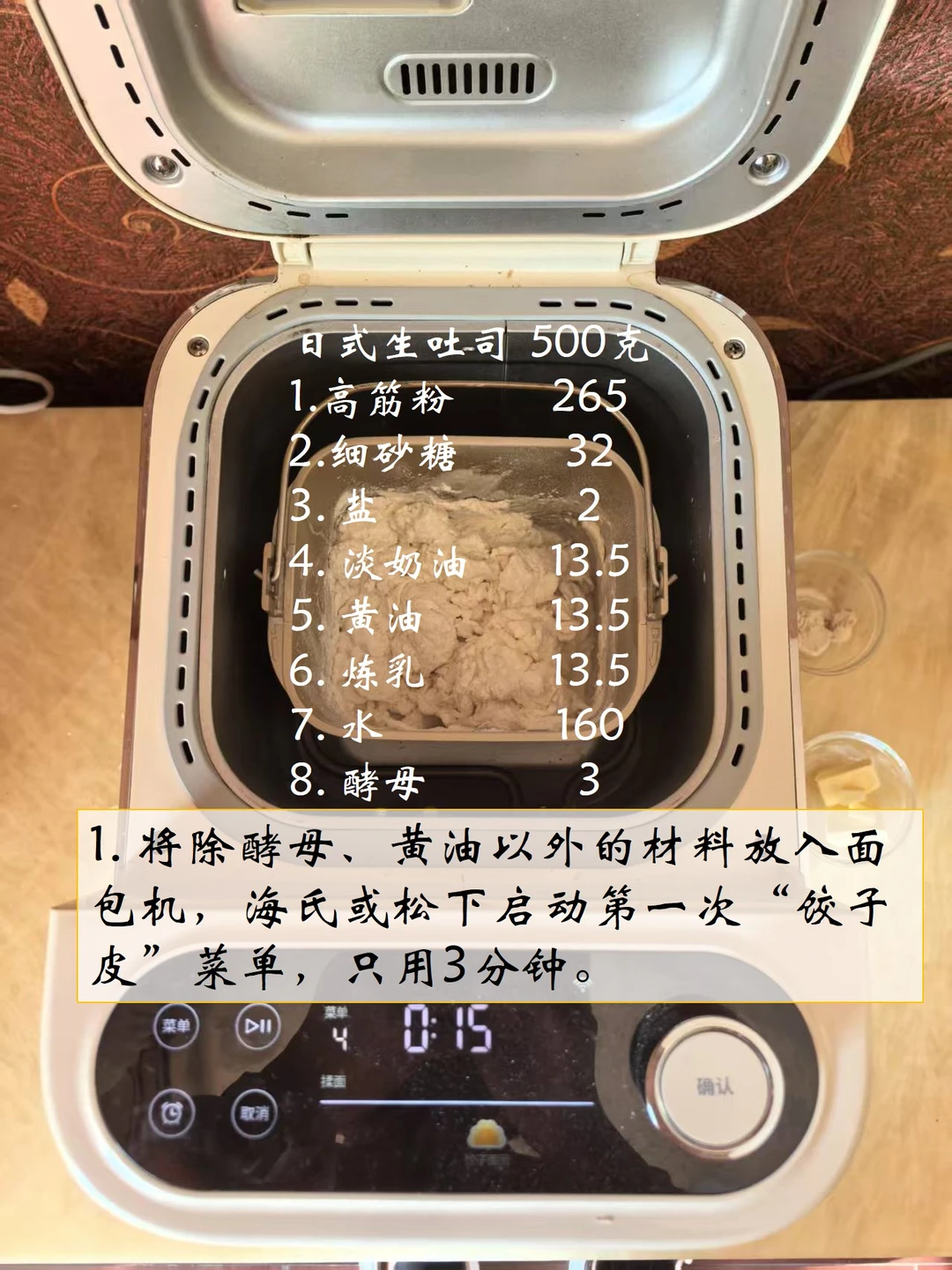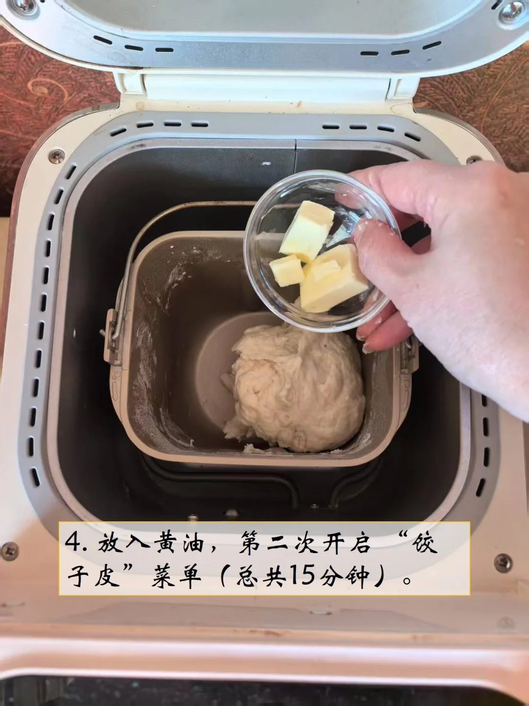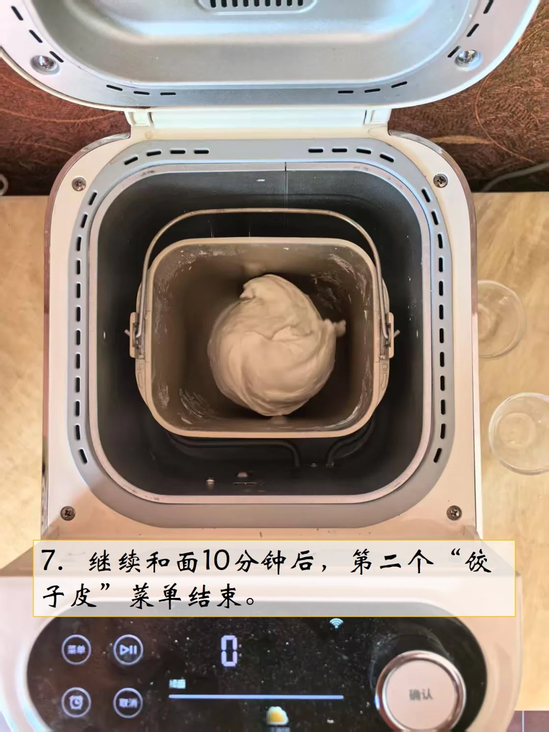 [三R]图中选用的是“饺子皮”菜单是海氏和松下面包机特有的,如果是柏翠或者东菱等其他面包机,可以选用自带的揉面功能的菜单,一样操作。