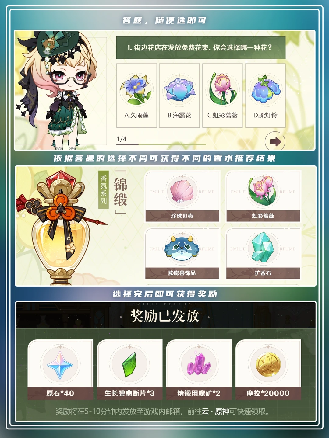 艾梅莉埃「选香入门」H5活动,可获得40原石! 活动开放时间:8月1日—8月7日 🌟标重点: 根据自己的心意直接选就好啦[哇R]