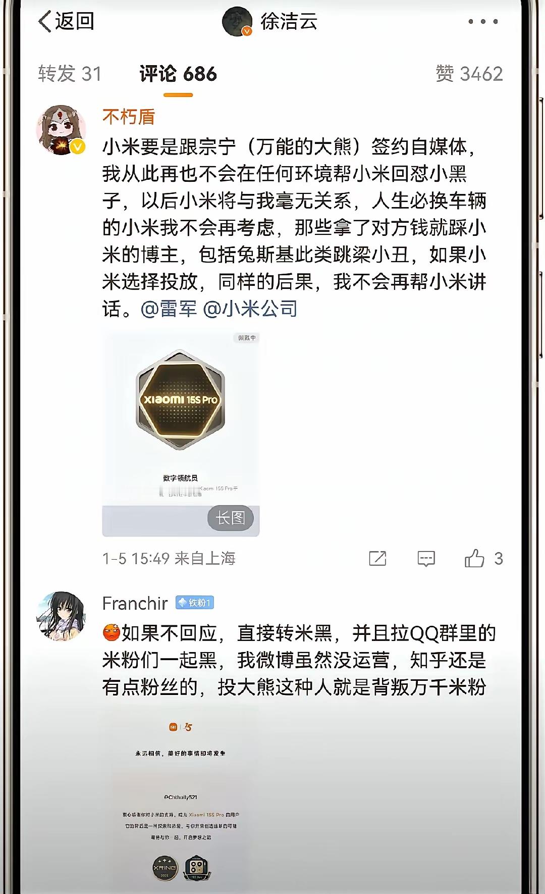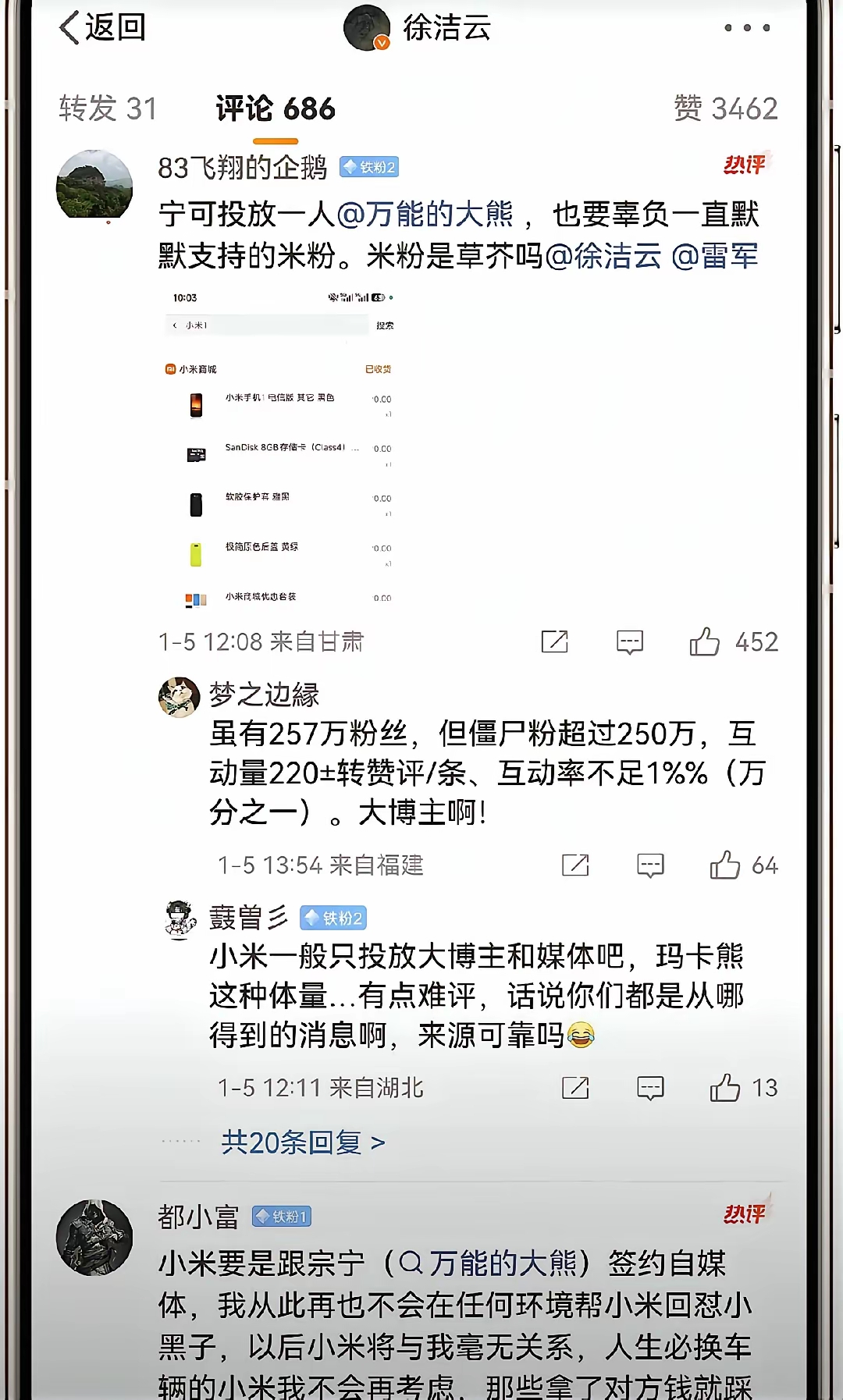 小米徐洁云致歉!大熊到手的鸡腿🍗没有了!以为自己兄弟上台了,可以有长期饭票了!结果米粉不答应!关于大熊怎么得罪米粉的?大家心知肚明!所以互联网是有记忆的!自己曾经干过的坏事,都一笔一笔记在小本子上!