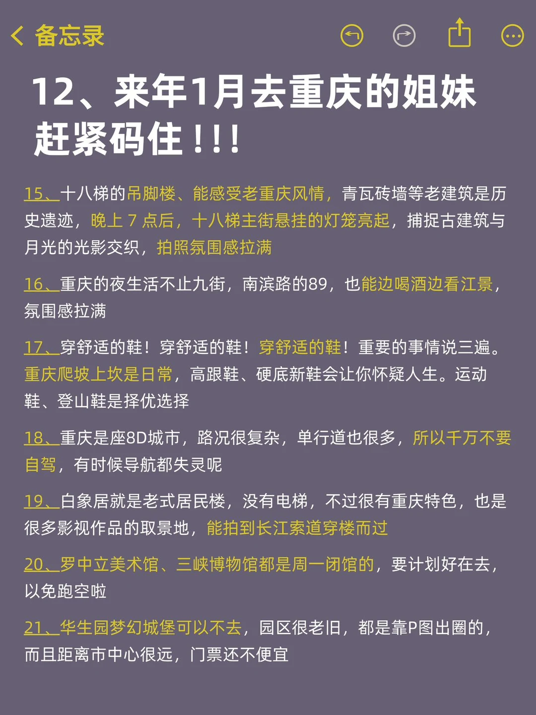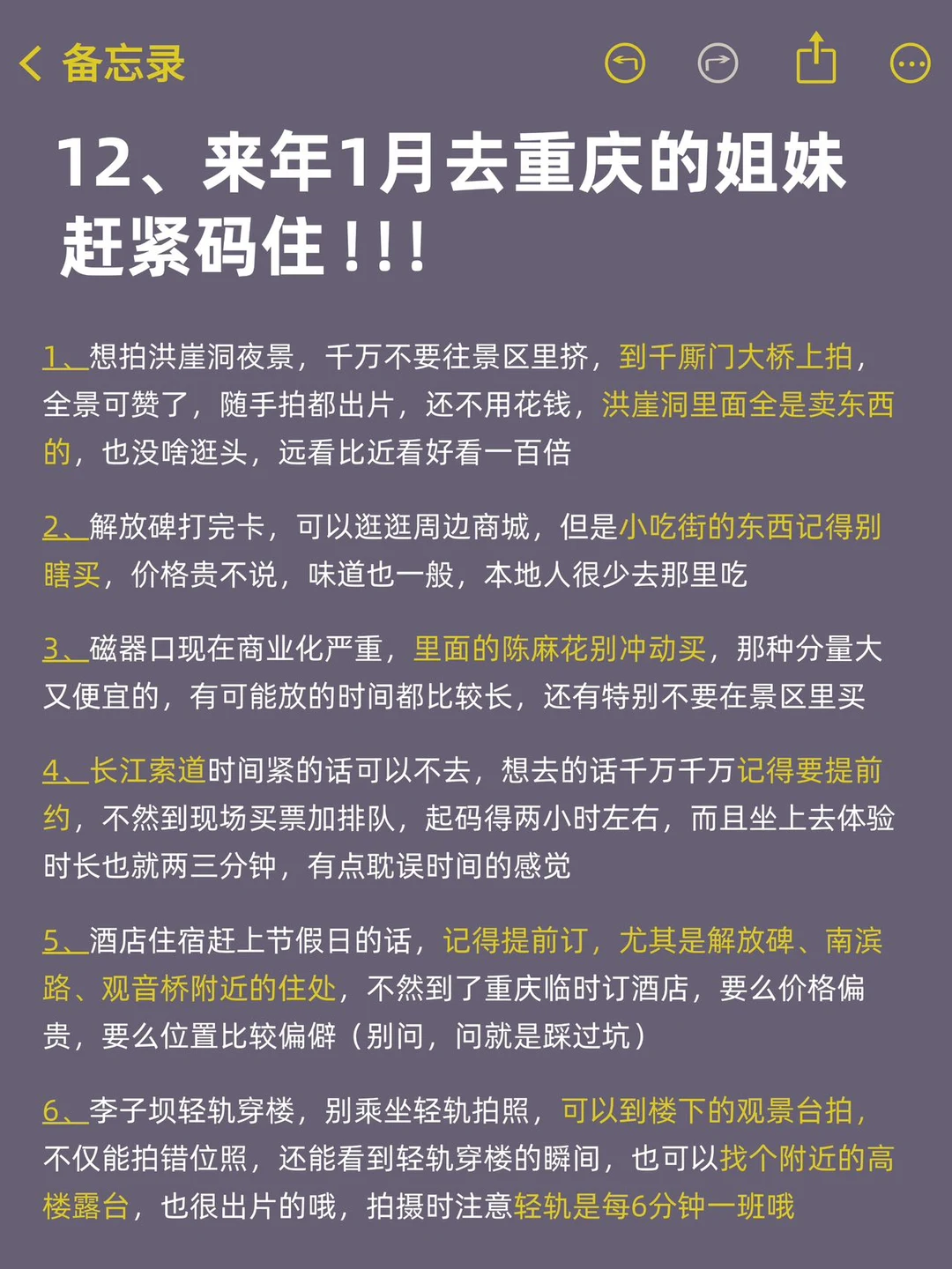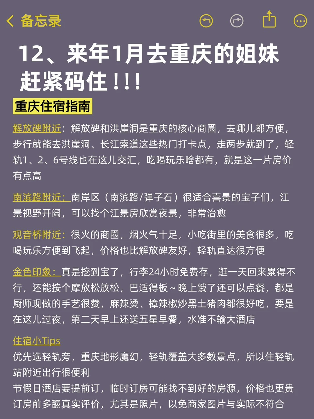 整理了一份非常全的重庆旅游攻略,12月或者来年1月要去重庆的姐妹们可以看下!贼实用!