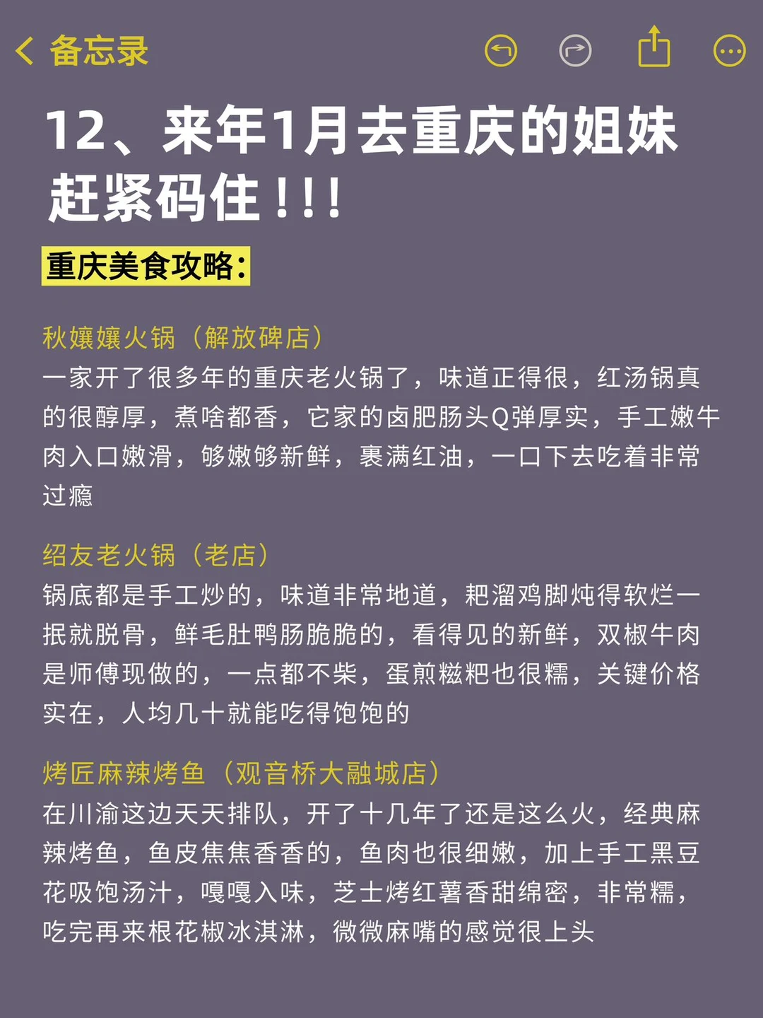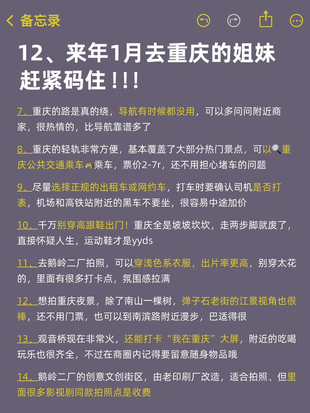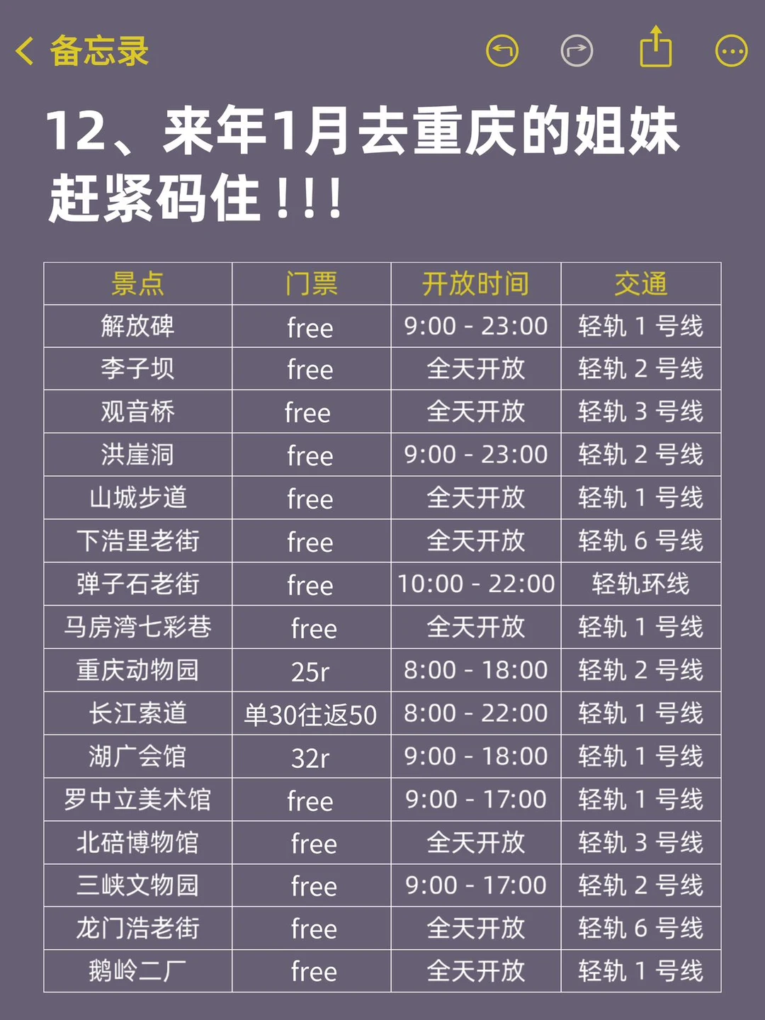 整理了一份非常全的重庆旅游攻略,12月或者来年1月要去重庆的姐妹们可以看下!贼实用!