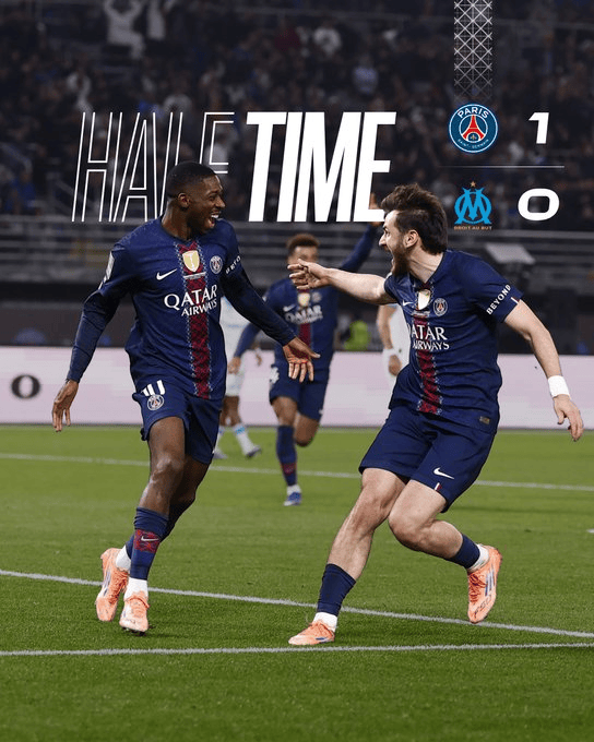 虎扑01月08日讯法国超级杯决赛,巴黎半场1-0马赛。