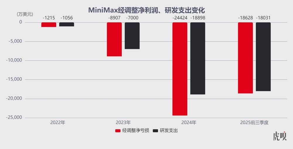 即便团队如此年轻,MiniMax却交出了连OpenAI都眼馋的“人效”:截至2025年9月底,公司员工共385人,累计研发投入仅5亿美元,同期OpenAI累计投入约400~550亿美元——相当于用OpenAI约1%的投入,便将文本、语音、视觉三大AI核心模态推进至全球第一梯队。