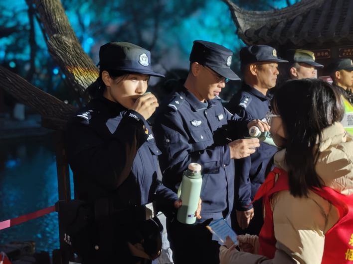 1月1日清晨5时,天光未明、寒风裹挟着湿意刮过南湖湖面,南湖区公安分局七一派出所民警李慧正在湖心岛今年第一班“红船守护岗”执勤,嘉兴市实验小学学生陈杍跟着志愿者老师乘船靠岸,她怀中抱着自己亲手制作的红糖姜茶,将这份暖意献给在寒风中执勤的民警。