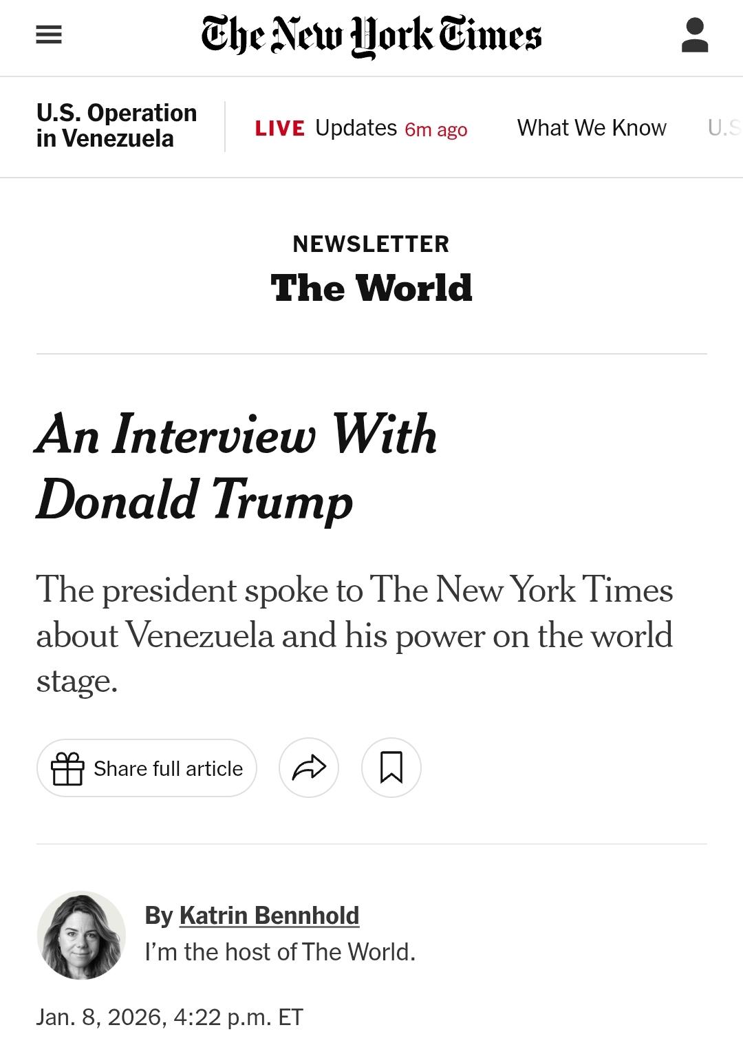 1月9日,美国的《纽约时报》刊登了对于特朗普的专访,系统阐述了他在打击委内瑞拉之后的一系列想法和判断。那么特朗普到底说了一些什么?对我们思考如今的美国又有什么样的帮助呢? 首先,一开始最让人印象深刻的是,特朗普在白宫的办公桌上摆了一架B2轰炸机的模型。这架飞机直接参与了去年6月,美国对伊朗三处核设施的轰炸。这是否意味着,在对委内瑞拉的行动之后,美国正在认真的考虑针对伊朗的军事行动? 其次,特朗普认为二战后建构的世界秩序已经成为了美国的负担。在采访当中,特朗普强调,他不受任何国际法、国际规范和规则的约束。对他来说,唯一的约束就是他自己内心的道德规则。这也帮助我们理解为何特朗普会冒天下之大不韪,直接抓捕马杜罗;也可以帮助我们理解,为何他昨天一口气会退出66个国际组织。 第三,他提到了委内瑞拉问题和台湾的联动性。他认为他在委内瑞拉的军事行动不会刺激中方在台海动手,也认为在他的任内,台海应该可以维持和平。但他最后依然强调,中方认为台湾是其领土的一部分,所以中国要怎么做,完全取决于他自己。不过如果冲突真的发生了,他会“感到不高兴”。 第四,特朗普强调获得对格陵兰岛的领土所有权至关重要。他认为如果仅仅是拥有军事基地,是远远不够的,会对美国构成很大的限制。而如果实际拥有格陵兰岛这块领土,可以得到更多的东西。不过在采访当中,特朗普拒绝回应这是否会伤害与北约国家的关系。 总的来看,这个采访给人的感受是,委内瑞拉的军事行动似乎打开了一个潘多拉的魔盒。特朗普日益按照自己的想法,突破国际规则,用军事力量来服务于美国的私利。这也可以帮助我们理解,为什么今年美国的军事预算会增加50%。特朗普下一个打击的对象,有可能是格陵兰、古巴、伊朗……或者任何一个他认为对美国利益重要的国家。它在国际社会当然会产生寒蝉效应,加剧中小国家的恐惧感;但也会产生聚旗效应,让全球南方国家更密切、更迫切地团结在一起。