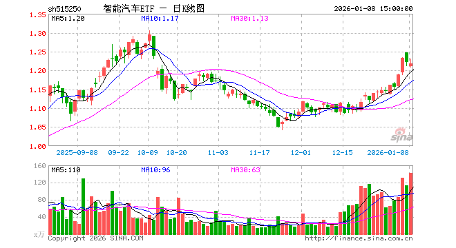 智能汽车ETF(515250)业绩比较基准为中证智能汽车主题指数收益率,管理人为富国基金管理有限公司,基金经理为张圣贤,成立(2020-12-24)以来回报为21.89%,近一个月回报为9.80%。