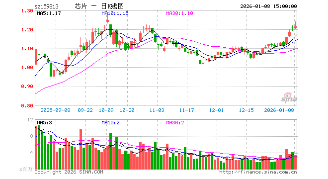 1月8日,半导体ETF(159813)涨0.50%,成交额4.03亿元。当日份额减少7900.00万份,最新份额为49.79亿份,近20个交易日份额减少4.76亿份。最新资产净值计算值为60.42亿元。