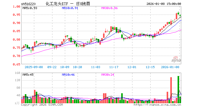 化工龙头ETF(516220)业绩比较基准为中证细分化工产业主题指数收益率,管理人为国泰基金管理有限公司,基金经理为王玉,成立(2021-03-02)以来回报为-6.01%,近一个月回报为12.64%。