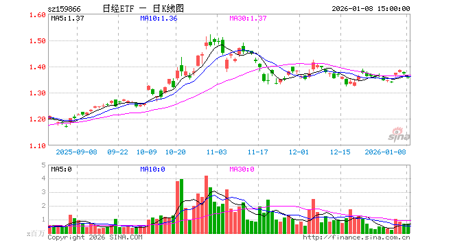 1月8日,日经ETF(159866)跌1.17%,成交额9547.79万元。当日份额增加50.00万份,最新份额为6.69亿份,近20个交易日份额增加950.00万份。最新资产净值计算值为8.89亿元。
