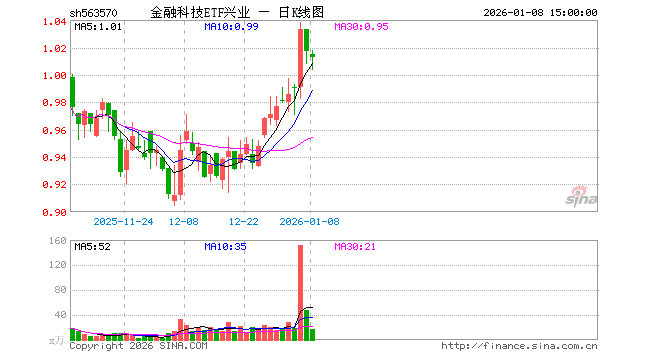 1月8日,金融科技ETF兴业(563570)跌0.39%,成交额1739.86万元。当日份额减少300.00万份,最新份额为2.03亿份,近20个交易日份额减少1.71亿份。最新资产净值计算值为2.06亿元。