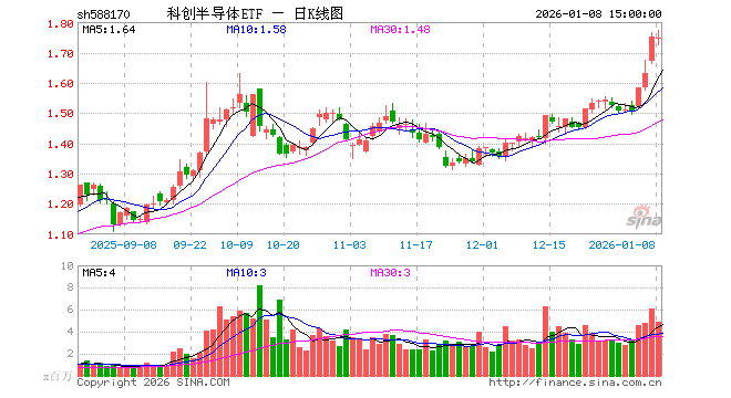 1月8日,科创半导体ETF(588170)跌0.34%,成交额8.48亿元。当日份额增加6800.00万份,最新份额为24.15亿份,近20个交易日份额增加4200.00万份。最新资产净值计算值为42.15亿元。