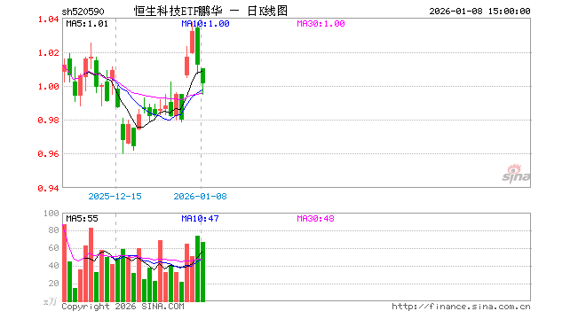 恒生科技ETF鹏华(520590)业绩比较基准为恒生科技指数收益率(经汇率调整后),管理人为鹏华基金管理有限公司,基金经理为李悦、钟成亮,成立(2025-11-17)以来回报为1.22%,近一个月回报为-0.60%。