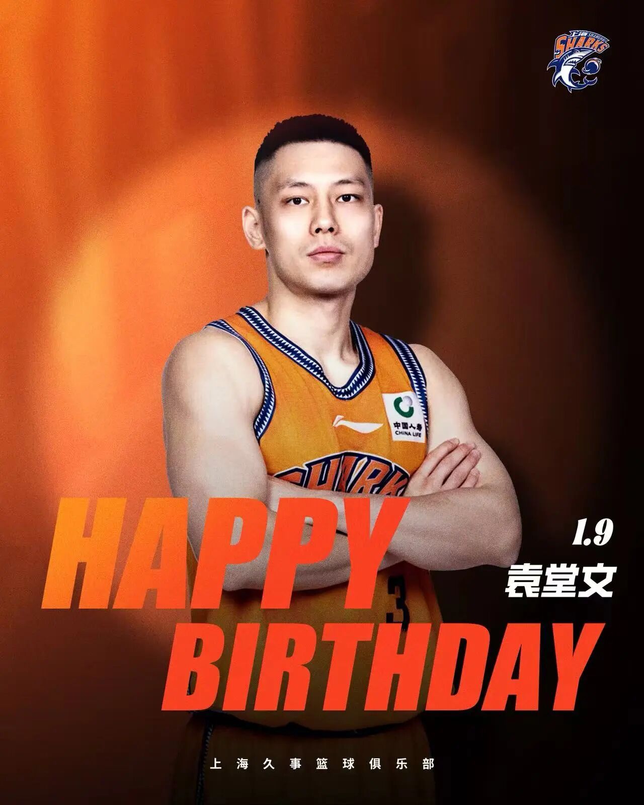 虎扑01月09日讯上海男篮社媒发文为袁堂文庆生。