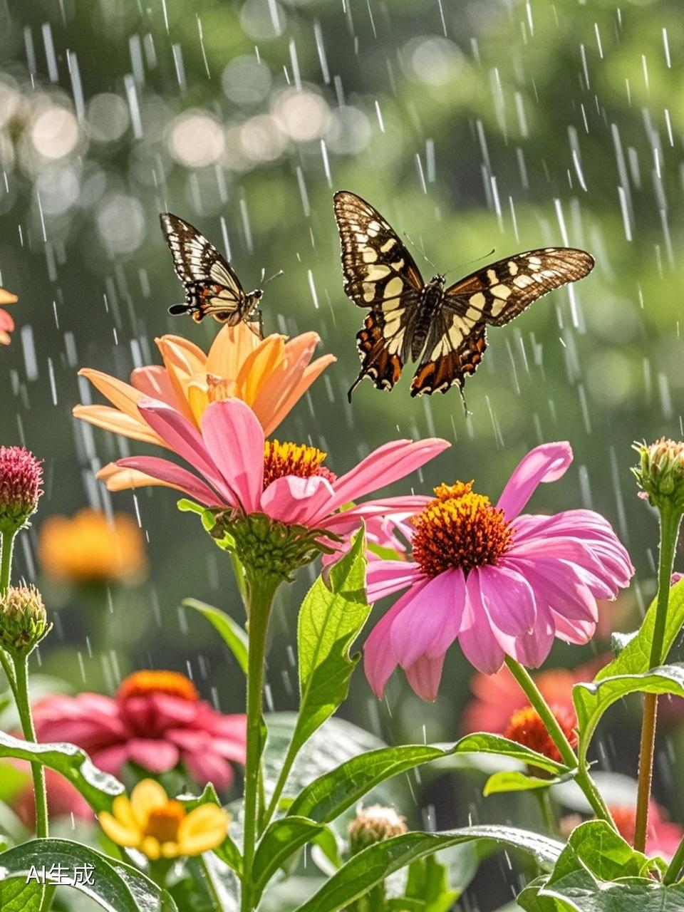 上联:日出花含笑,诚邀下联雨花开蝶飞舞。