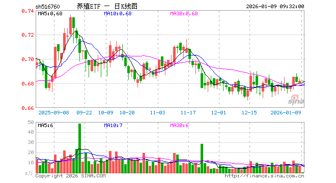 1月9日,养殖ETF(516760)开盘涨0.00%,报0.682元。养殖ETF(516760)重仓股方面,牧原股份开盘跌0.12%,温氏股份跌0.18%,海大集团跌0.19%,新希望涨0.00%,梅花生物跌0.29%,大北农涨0.00%,圣农发展涨0.00%,生物股份涨1.87%,天康生物涨0.00%,立华股份涨0.34%。