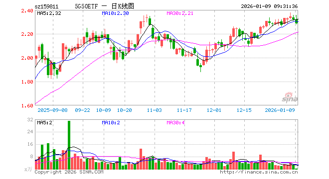 1月9日,5G50ETF(159811)开盘涨0.00%,报2.318元。5G50ETF(159811)重仓股方面,新易盛开盘跌3.25%,中际旭创跌3.28%,工业富联跌1.35%,胜宏科技跌1.59%,中兴通讯跌0.15%,兆易创新跌1.62%,豪威集团涨0.00%,中国电信跌0.16%,沪电股份跌1.50%,中国移动涨0.00%。