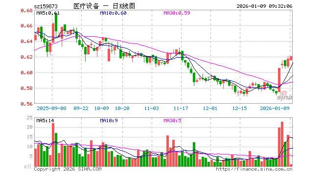 1月9日,医疗设备ETF(159873)开盘跌0.32%,报0.615元。医疗设备ETF(159873)重仓股方面,迈瑞医疗开盘涨0.14%,联影医疗涨0.79%,爱尔眼科跌0.09%,爱美客涨2.75%,新产业涨0.64%,惠泰医疗涨1.17%,鱼跃医疗涨0.08%,乐普医疗跌0.97%,福瑞股份涨0.05%,英科医疗涨0.43%。
