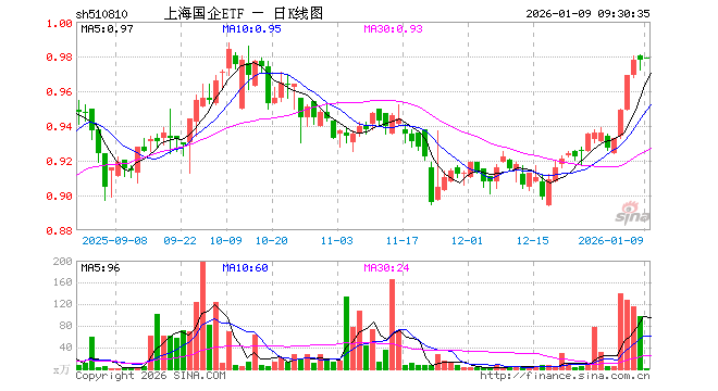 1月9日,上海国企ETF(510810)开盘涨0.10%,报0.979元。上海国企ETF(510810)重仓股方面,中国太保开盘涨0.53%,国泰海通涨0.00%,上海机场涨0.18%,张江高科涨3.87%,上海电气涨0.54%,中微公司跌3.89%,浦发银行涨0.17%,东方证券跌0.37%,沪硅产业跌1.90%,华域汽车涨0.05%。