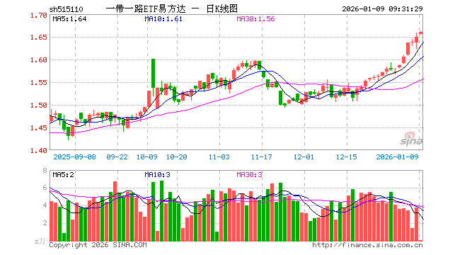 一带一路ETF易方达(515110)开盘涨0.42%,重仓股平高电气涨0.00%,山东黄金跌0.92%