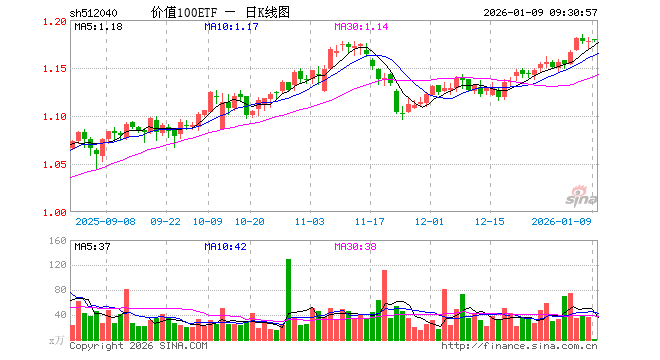 1月9日,价值100ETF(512040)开盘涨0.17%,报1.180元。价值100ETF(512040)重仓股方面,工业富联开盘跌1.35%,华友钴业跌1.48%,捷佳伟创跌1.11%,国恩股份跌0.07%,豫光金铅跌2.06%,杰瑞股份涨0.36%,川恒股份跌0.78%,奥特维跌0.84%,模塑科技跌0.54%,横店东磁跌0.50%。