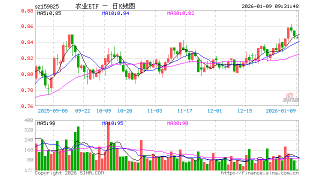 1月9日,农业ETF(159825)开盘跌0.12%,报0.846元。农业ETF(159825)重仓股方面,牧原股份开盘跌0.12%,温氏股份跌0.18%,海大集团跌0.19%,藏格矿业跌2.27%,盐湖股份跌1.46%,新希望涨0.00%,亚钾国际跌0.45%,梅花生物跌0.29%,扬农化工涨0.00%,大北农涨0.00%。