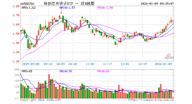 科创芯片设计ETF(588780)业绩比较基准为上证科创板芯片设计主题指数收益率,管理人为国联安基金管理有限公司,基金经理为黄欣、章椹元,成立(2024-12-11)以来回报为64.78%,近一个月回报为8.94%。