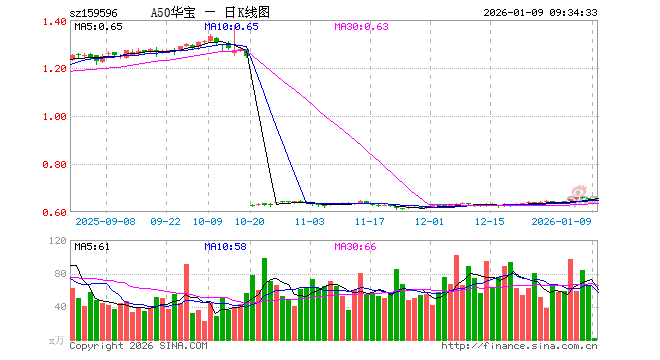 A50ETF华宝(159596)业绩比较基准为中证A50指数收益率,管理人为华宝基金管理有限公司,基金经理为蒋俊阳,成立(2024-03-07)以来回报为35.45%,近一个月回报为2.12%。