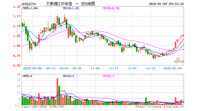 1月9日,大数据产业ETF(516700)开盘涨0.10%,报1.046元。大数据产业ETF(516700)重仓股方面,中科曙光开盘涨0.00%,科大讯飞跌0.49%,浪潮信息跌0.73%,紫光股份跌0.35%,恒生电子跌0.06%,拓维信息跌1.78%,润泽科技涨4.01%,中国长城涨0.20%,用友网络跌0.72%,深信服跌0.47%。