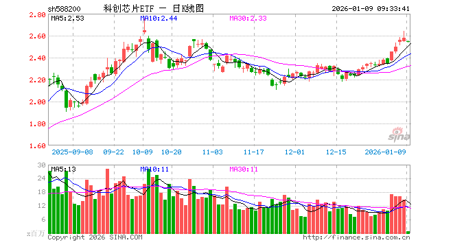 1月9日,科创芯片ETF(588200)开盘跌1.16%,报2.550元。科创芯片ETF(588200)重仓股方面,海光信息开盘跌1.52%,澜起科技跌0.82%,中芯国际跌0.77%,寒武纪跌1.66%,中微公司跌3.89%,芯原股份跌0.06%,华虹公司跌1.14%,沪硅产业跌1.90%,华海清科跌0.16%,晶晨股份跌0.27%。